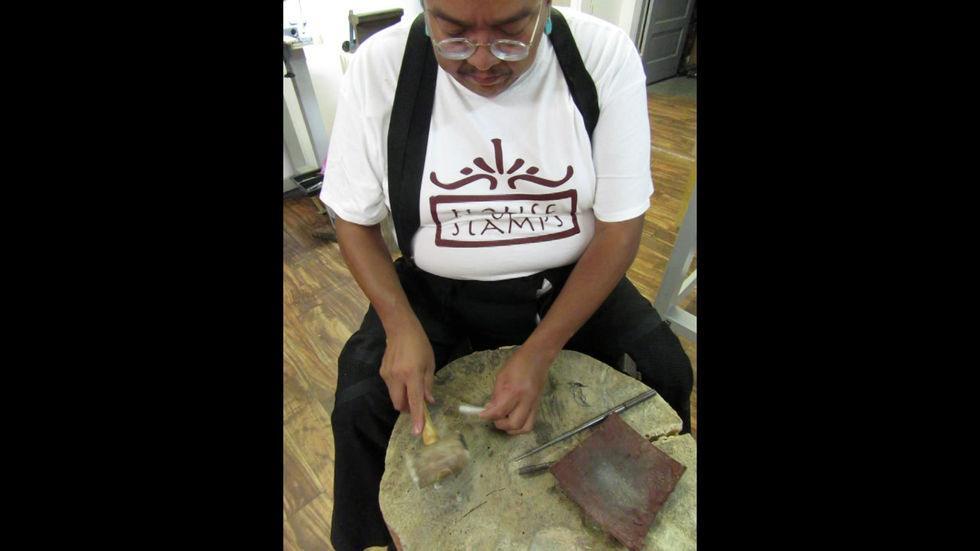 Under the guidance and instruction of Lyndon and Daniel John, the week's instruction was both project focused and technique focused, they included bolo making; intermediate Navajo stamp work; tufa carving; bezel making; and stone setting. During their one-on-one instruction, each student developed and refined their artistic skill and technique at their own pace.
